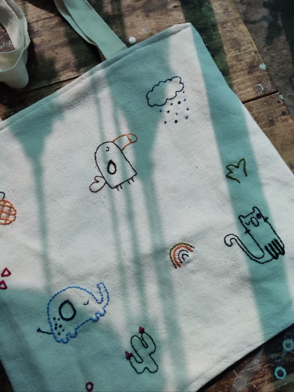توت بگ آستردار تابستانه پانچ دوز طرح فانتزی مدل مربع کد T12
